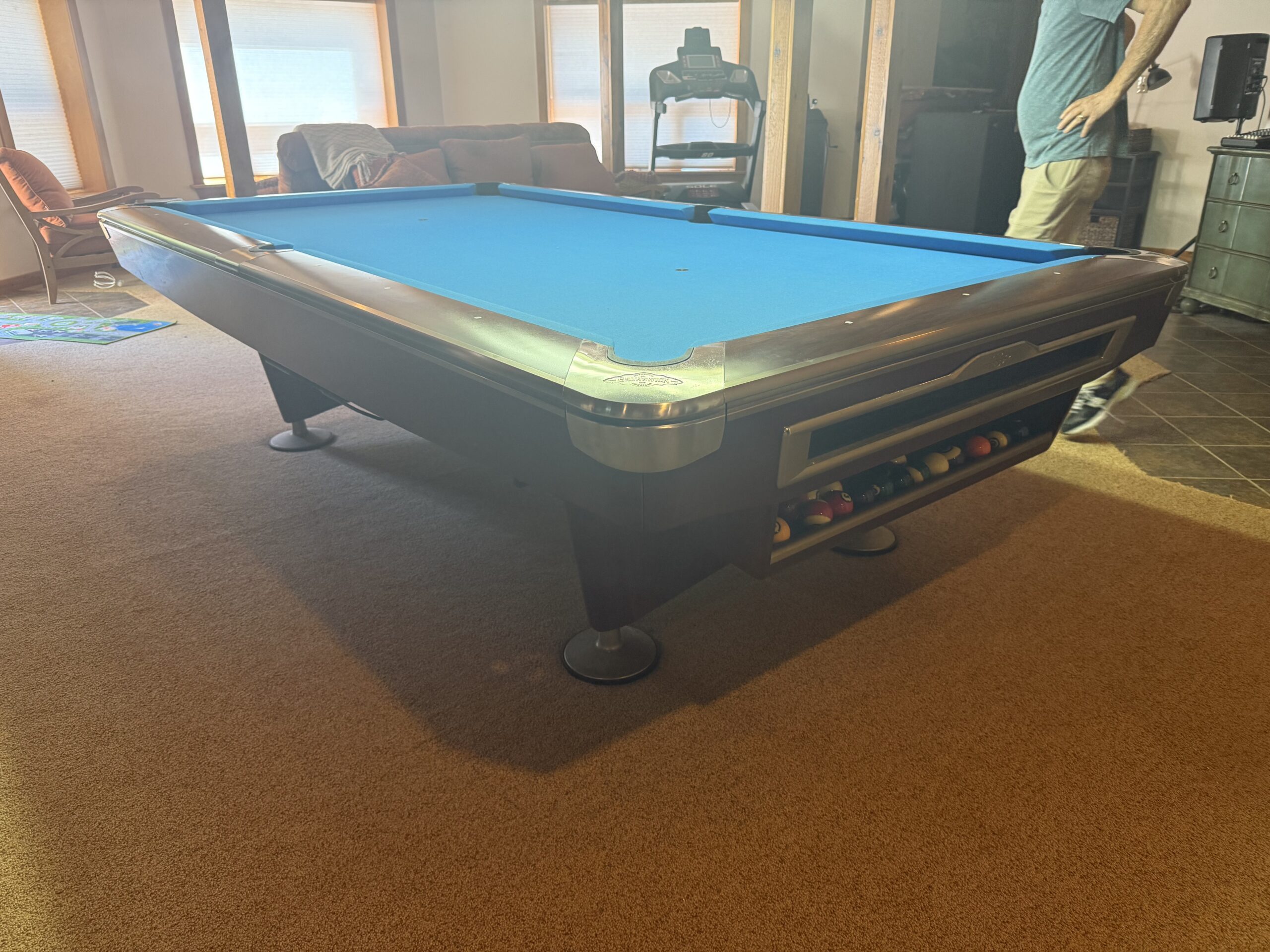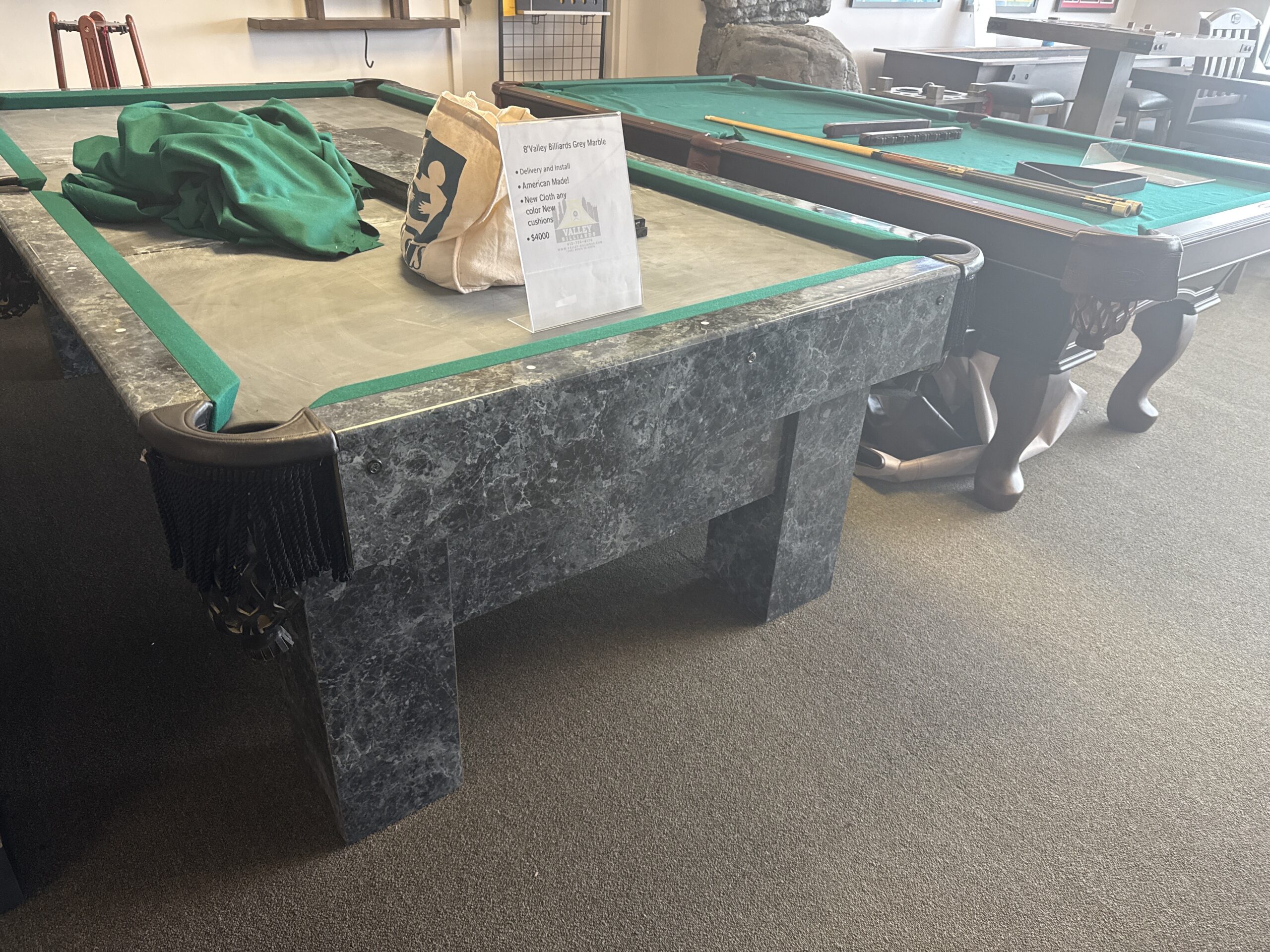 Used pool tables are the best bang for your buck! When we obtain a used table, we have three certified pool table mechanics fully inspect every single screw, bolt, frame component, and slate for any imperfections. If we happen to find anything, we repair it before delivery! If a table is beyond repair – we will not sell it. This is because we provide a LIFETIME GUARANTEE on every used table. We also install brand new, 100% gum rubber, cushions and brand new cloth (you pick the color!).